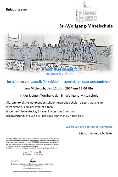 Förderverein: Vereinigung der Freunde und Förderer der St.-Wolfgang- Mittelschule Regensburg e.V.
