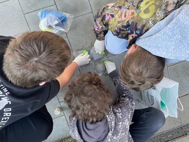 Während die Schülerinnen und Schüler der 6a und 8aM Stolpersteine putzten, fanden sie die Geschichte dahinter. Die tragischen Schicksale der Menschen wurden durch die Erzählungen von Frau Susanne Feichtmayer-Arnold und Frau Luise Gutmann, die die Aktion als Vertreterinnen der Stolpersteine e. V. begleiteten, deutlich.